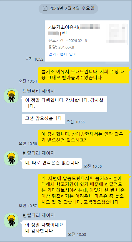 예기치 못한 상황 속에서 큰 심리적 부담을 안고 계셨음에도 끝까지 신뢰하고 함께해주신 의뢰인께 진심으로 감사드립니다.