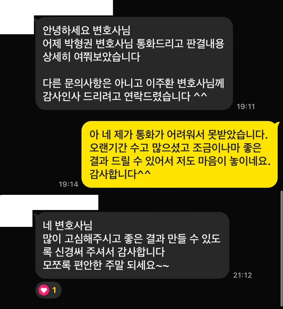 소송 후 의뢰인은 깊은 감사의 마음을 전하였으며,