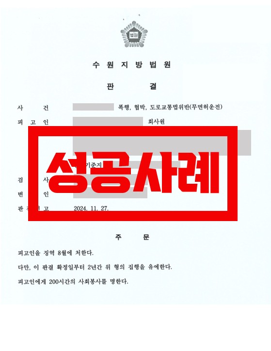 상대방 징역 8개월, 2년 집행유예, 200시간 사회봉사