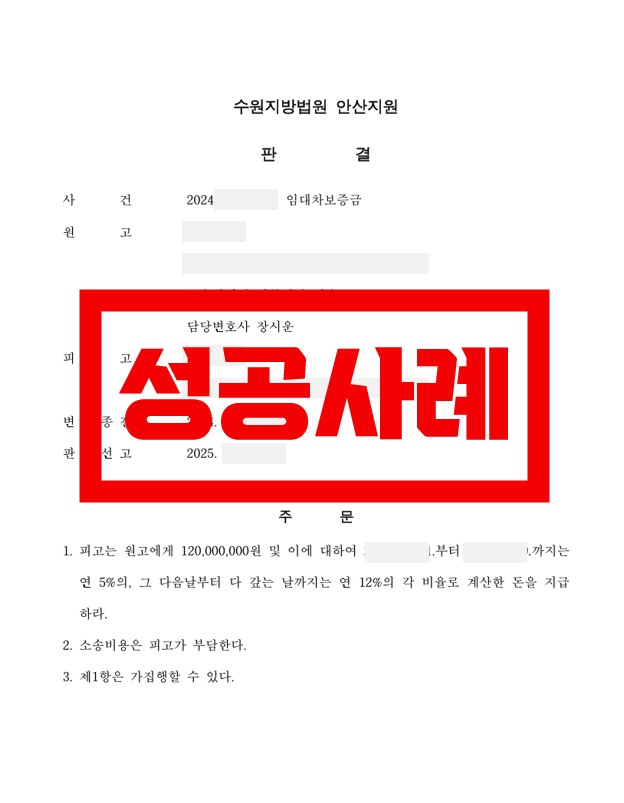 법무법인 영우는 임대차보증금 전액과 임대차계약이 종료된 이후부터 발생한 지연손해금을 보상받기 위한 임대차보증금 소송을 청구하였습니다.