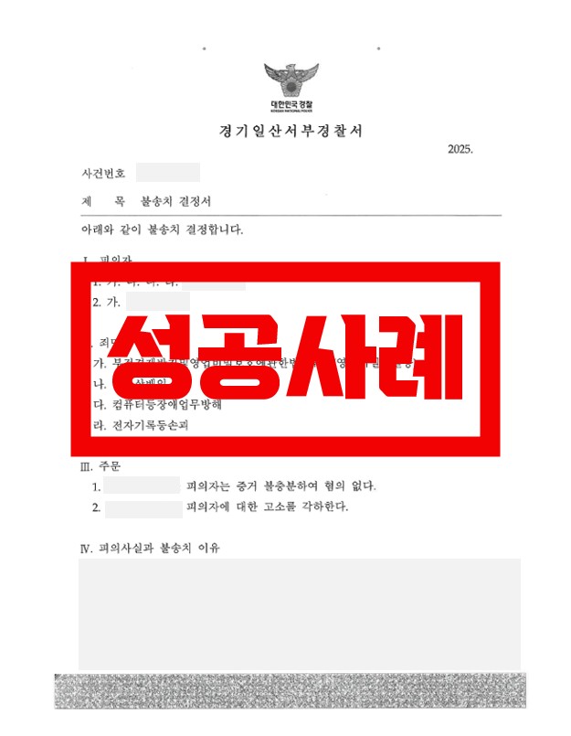 - 피의자 조사 전후 면담을 통해 사실관계와 포맷 경위 등을 구체적으로 정리해 진술 일관성을 유지하도록 지도했습니다.