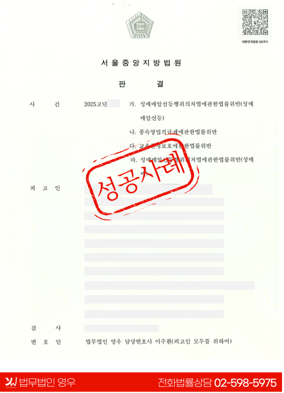 성매매알선 등 혐의에도 불구, 고용주는 집행유예·종업원은 벌금형으로 마무리된 성공사례