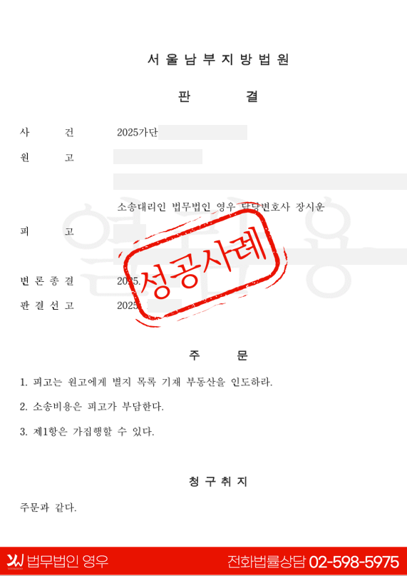 판결 선고 이후에도 피고가 퇴거하지 않을 가능성에 대비해, 집행문 부여와 강제집행 요건 확보까지 함께 검토하여 의뢰인의 실질적인 권리 구제를 끝까지 도왔습니다.