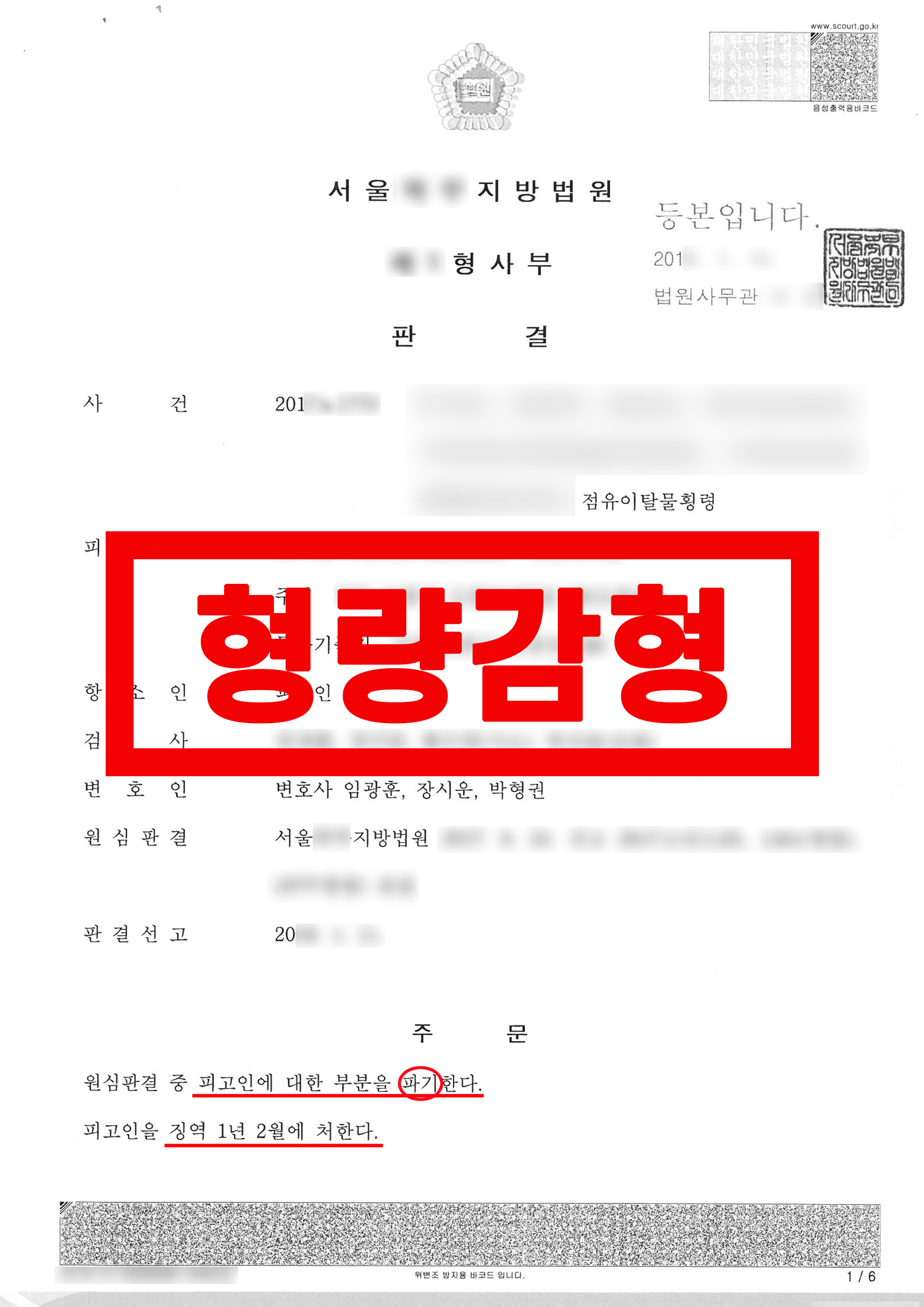 1심 법원은 이와 같은 의뢰인의 사정과 이 사건의 발생경위를 유리한 정상으로 참작하여 의뢰인에게 4월을 감형하여 징역 1년 2월을 선고하였고, 판결이 확정되었습니다.