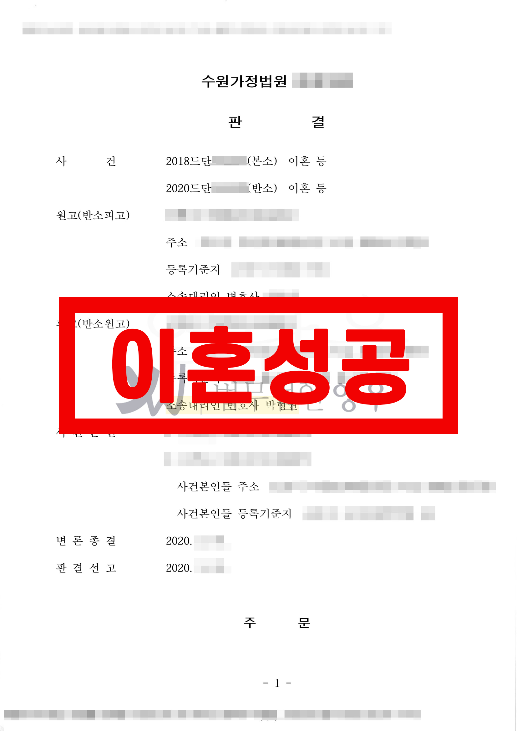 배우자의 외도 이혼 및 재산분할 청구 성공