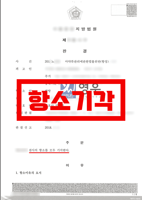 이 사건은 '의뢰인이 OO모텔에서 향정신성의약품인 메트암페타민(이하 '필로폰')을 투약하였다'는 공소사실로 기소되어 저희 법률사무소를 선임한 사건입니다. 1심 법원은 저희 법률사무소의 의견을 받아 들여 피고인에 대하여 일부 무죄를 선고하였고 이에 대하여 검찰 불복하여 항소한 사건입니다.